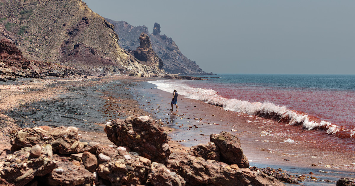 La impactante playa donde el mar se tiñe de rojo como la sangre y el suelo se puede comer